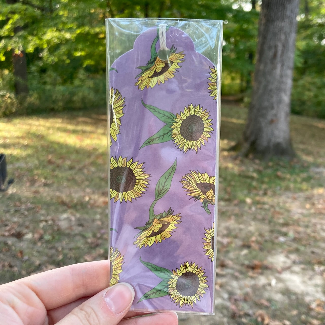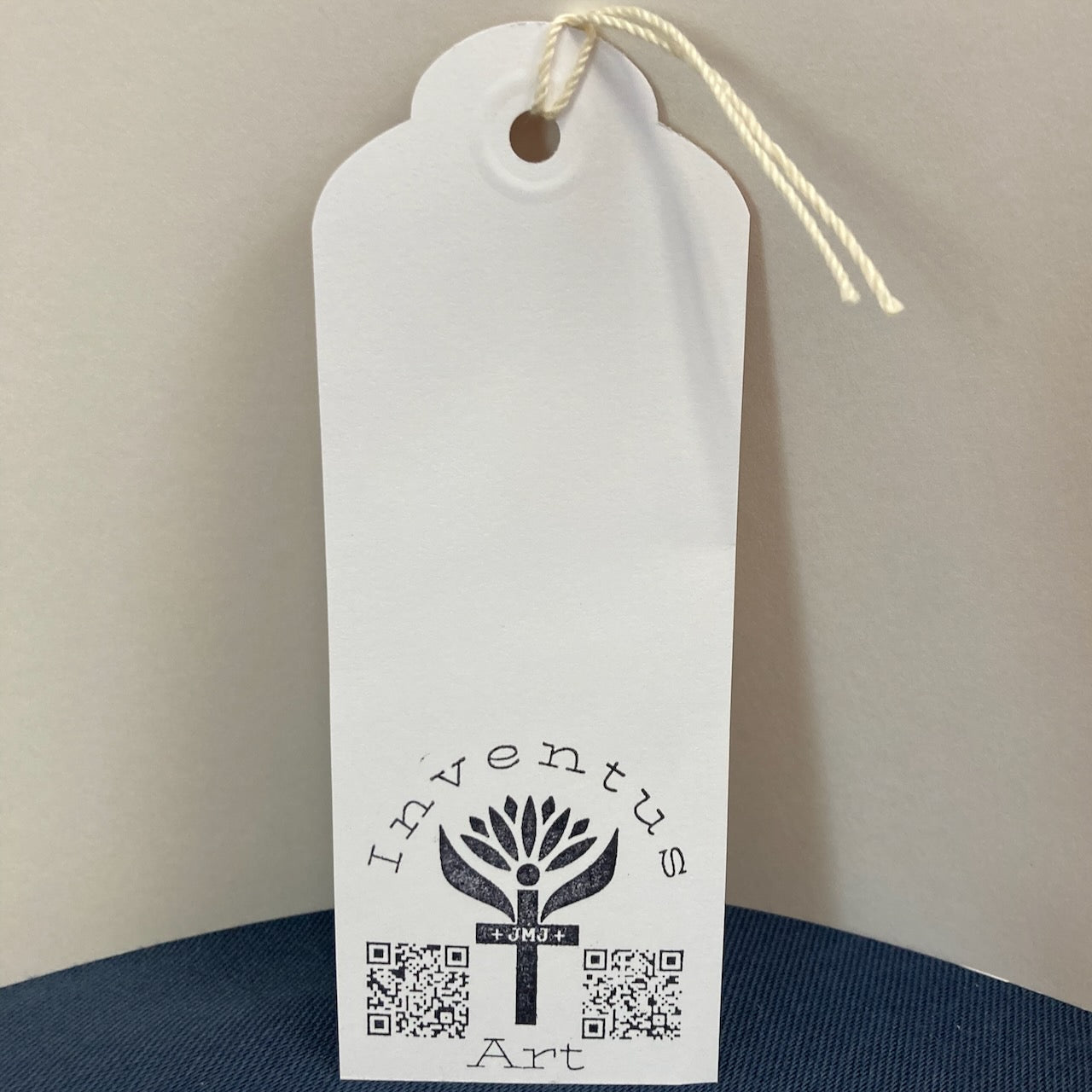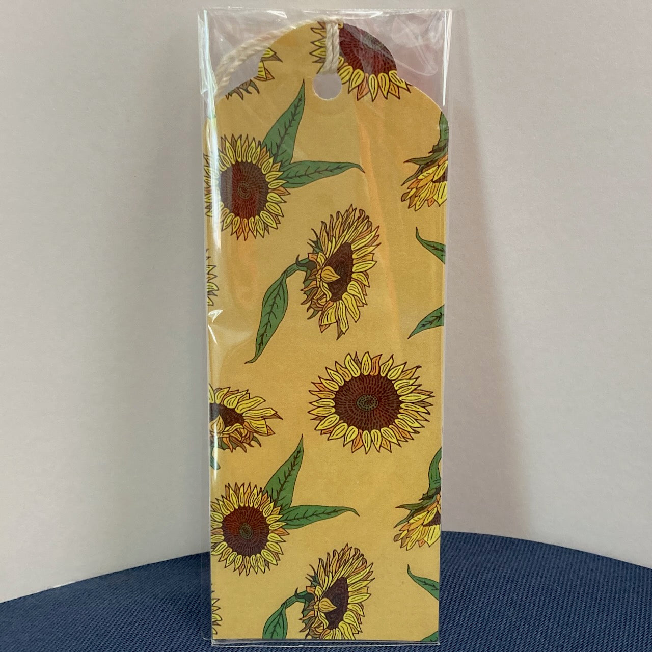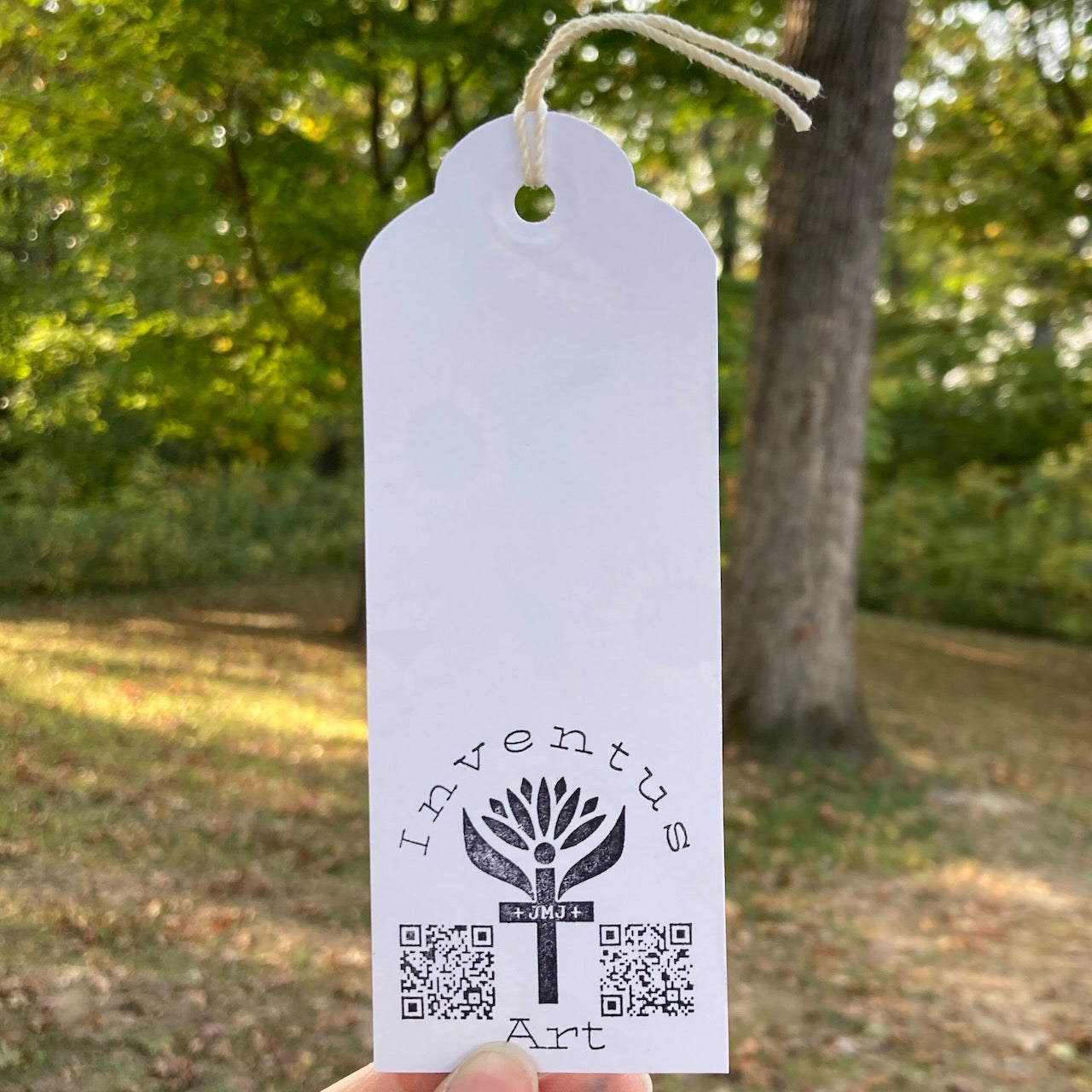 These bookmarks brighten your daily routine and make great small gifts. Each bookmark is 1 1/2" wide and made from hemp or cotton string and quality 80lb card stock printed at Wolf's Grantland Graphics in Lancaster, WI. Each is stamped with an attractive logo and QR codes for the artist's website and link page. Bookmarks match the greeting cards and gift tags also sold. Each bookmark is packaged in a non-plastic cellophane sleeve that will compost in the trash and sent with your order in a recyclable container.